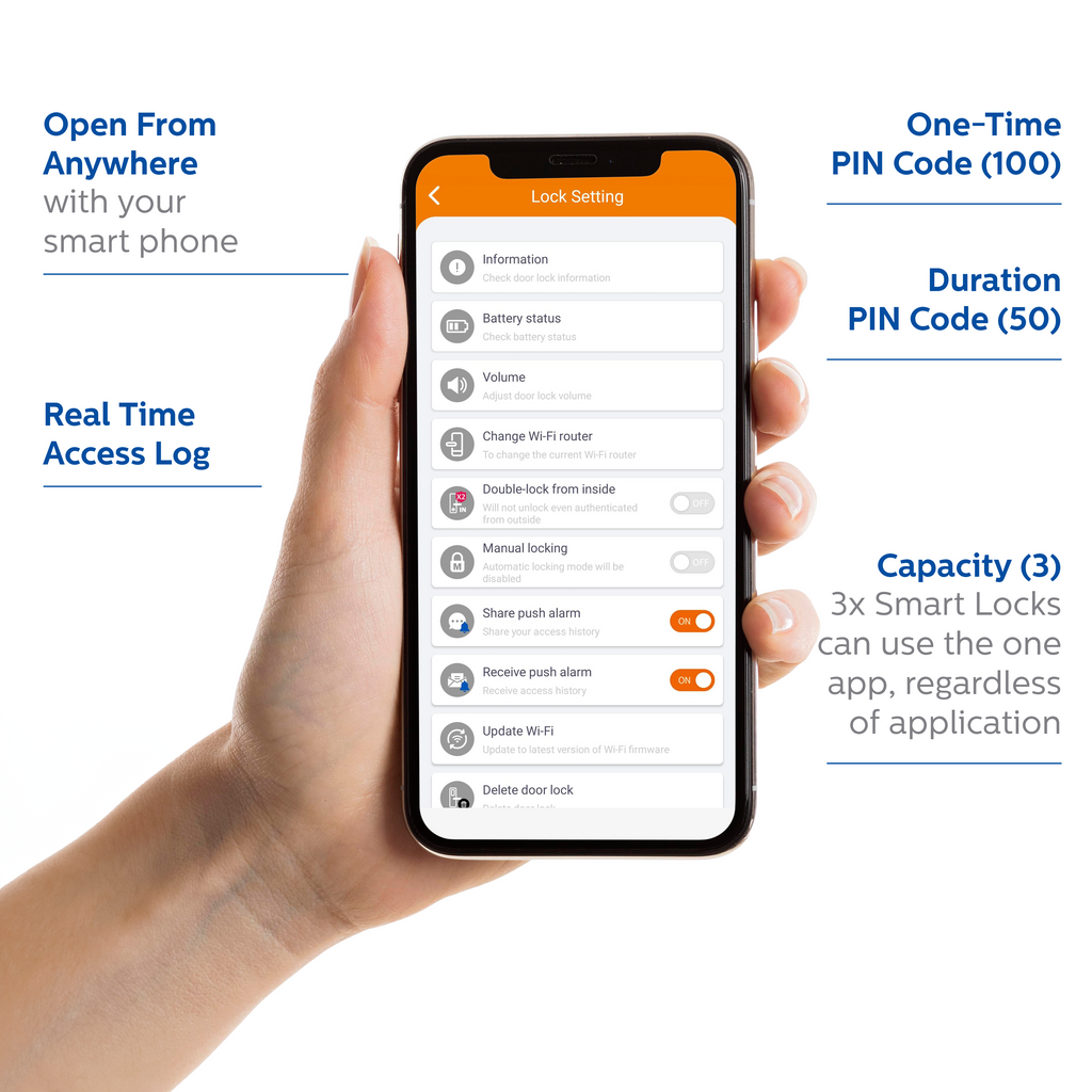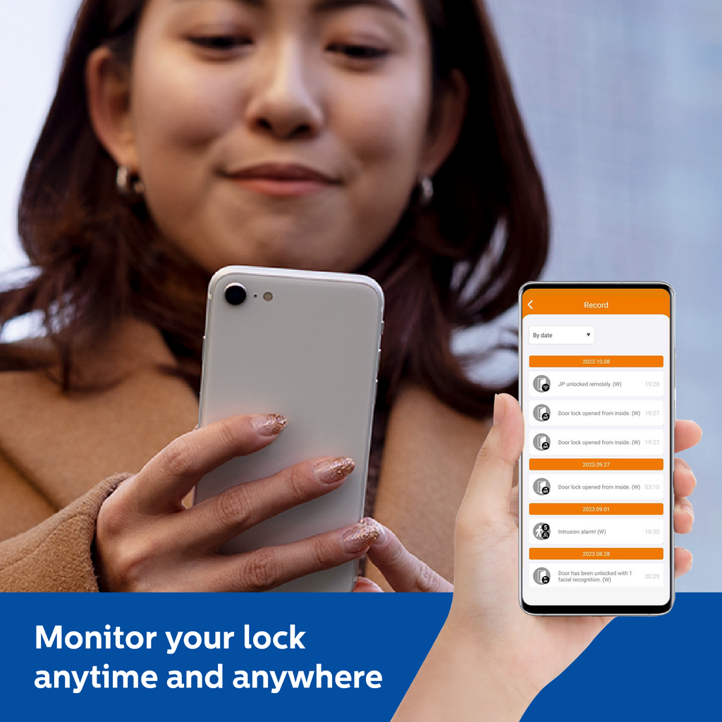 Your smart phone is the door key. Simply and securely unlock the door with your smartphone from anywhere.