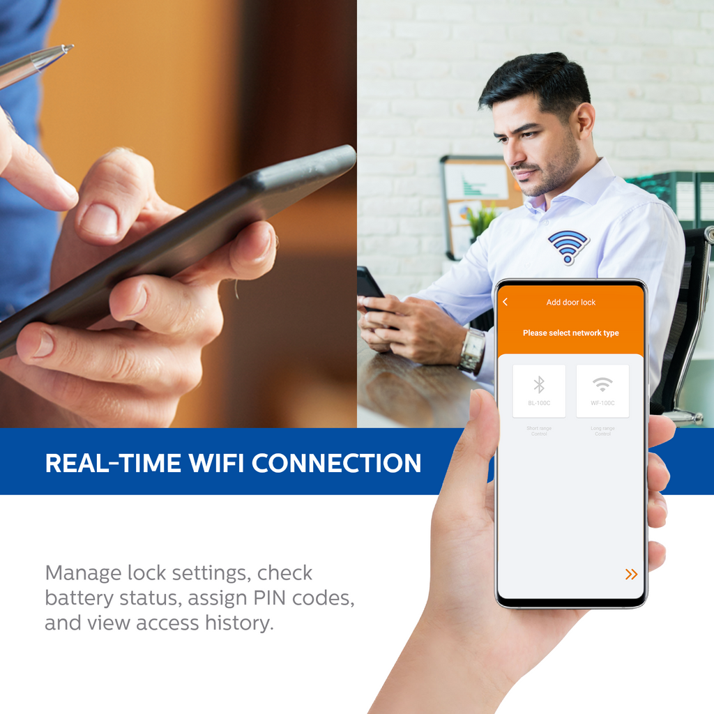 By connecting to a Wi-Fi network, users can use their smartphones or other devices to lock or unlock doors from anywhere with an internet connection. This technology enhances accessibility and security, allowing users to grant temporary access to guests or monitor entry remotely. Wi-Fi access simplifies door management and provides real-time notifications, offering a modern and flexible solution for controlling access to the property.