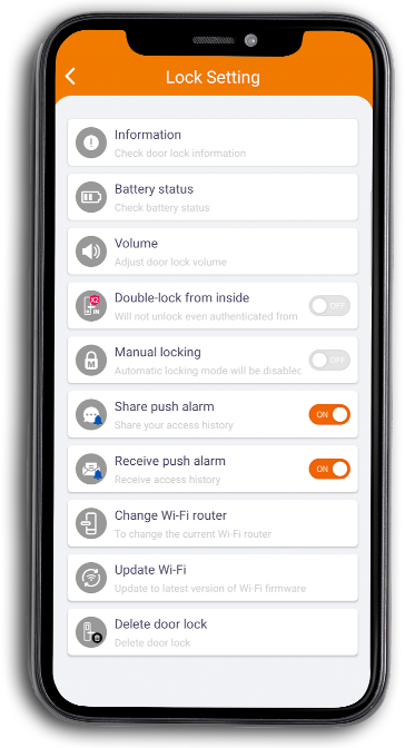 Your smart phone is the door key. Simply and securely unlock the door with your smartphone from anywhere.